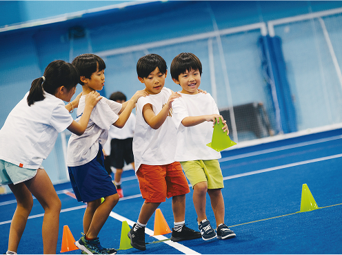 - プログラムは、運動に苦手意識を持つお子さまも楽しみながら体幹や身体の使い方などが身につく様にプログラムされているので、カラダのはぐくみもバッチリ! 本格的に競技スポーツを始める時にも役立ちます。